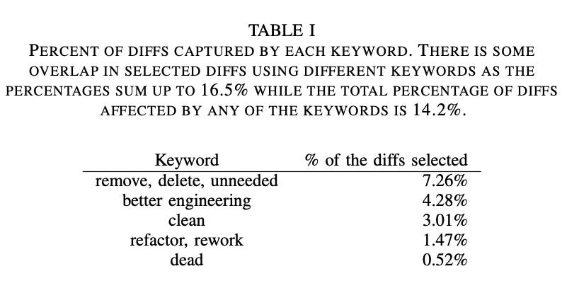 Scope of Improvement Work: Meta engineers use internal tags to label code changes related to improvement work. By analyzing these tags across all submitted diffs, researchers found that over 14% of changes were explicitly dedicated to code improvement.