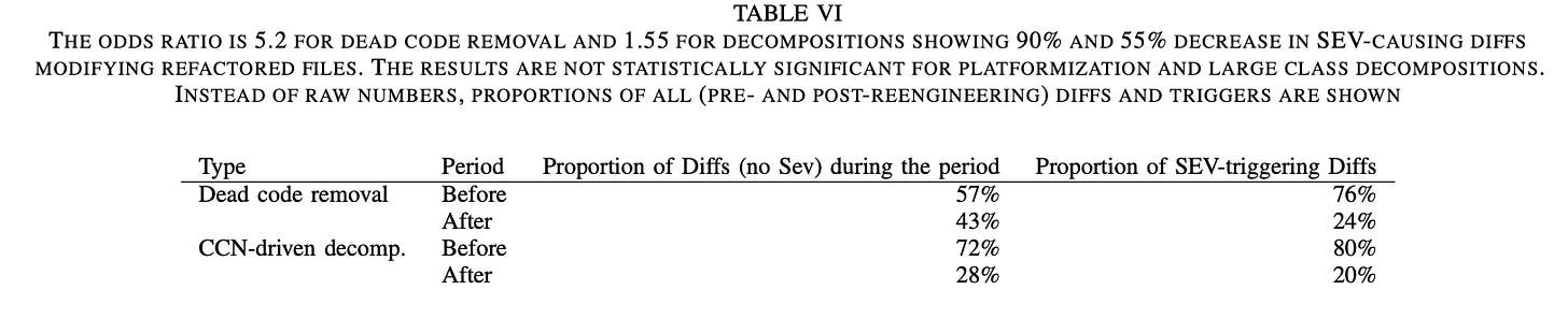 Decrease in outages: For example, SEV-triggering diffs dropped from 76% to 24% after dead code removal.