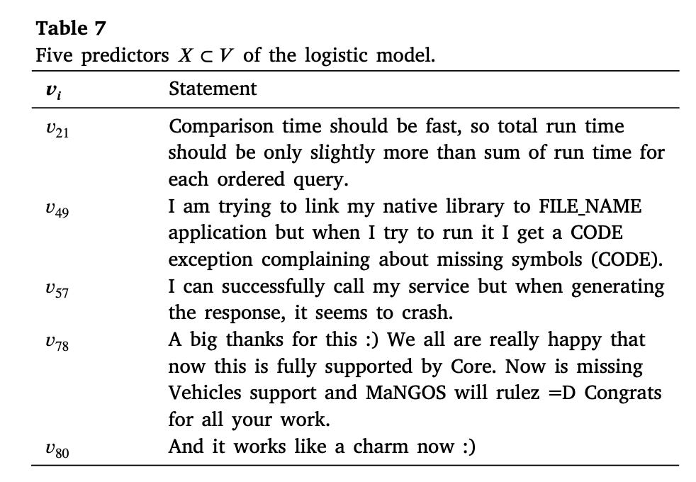 Just five statements predict group membership: Despite differences across 62 statements, a logistic regression model using only 5 polarizing statements could assign each developer to their correct perception group with 100% accuracy.