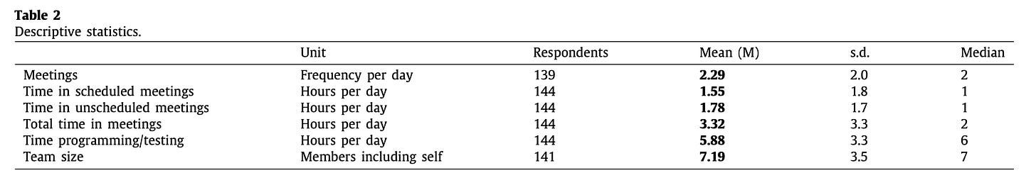 Time spent in meetings: Engineers averaged 7 hours and 45 minutes in scheduled meetings and 8 hours and 54 minutes in unscheduled meetings per week—totaling nearly 17 hours weekly on coordination.